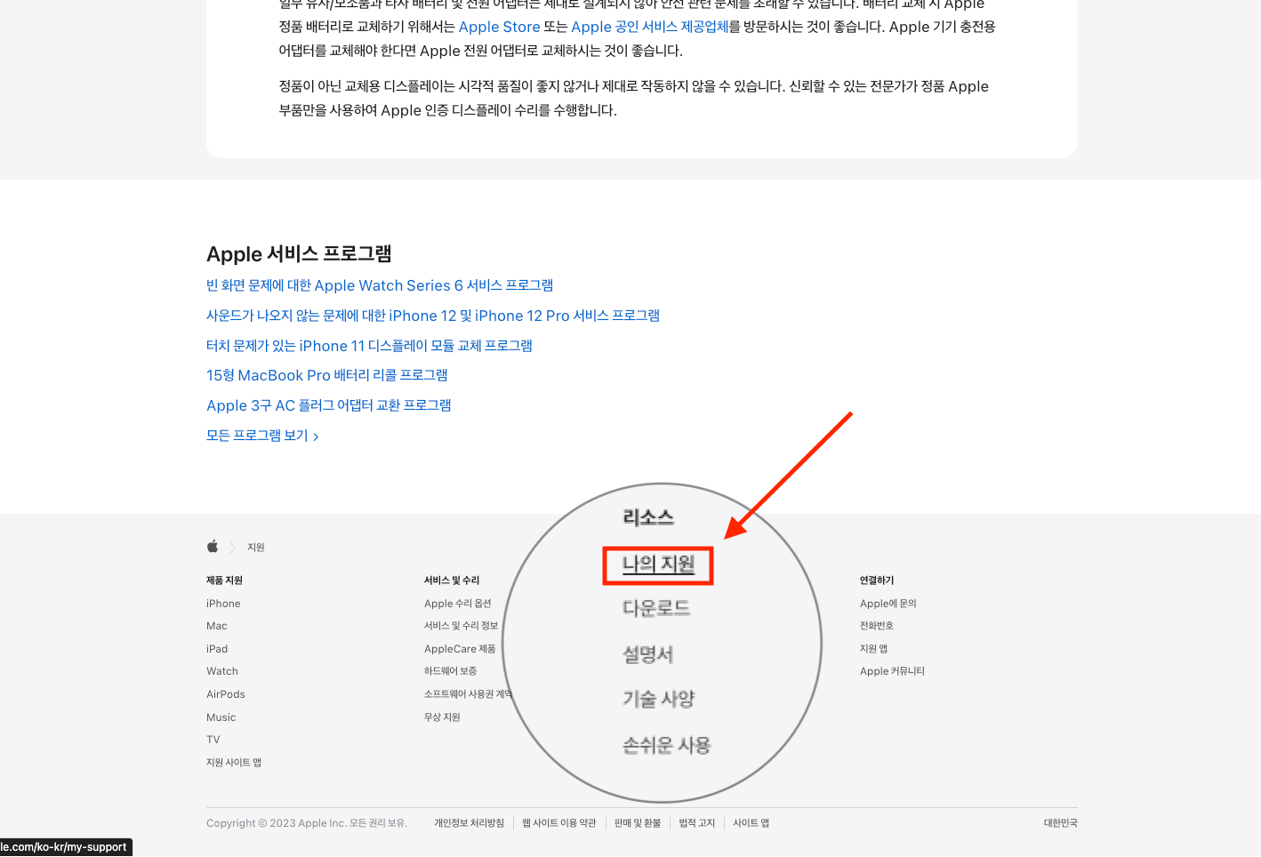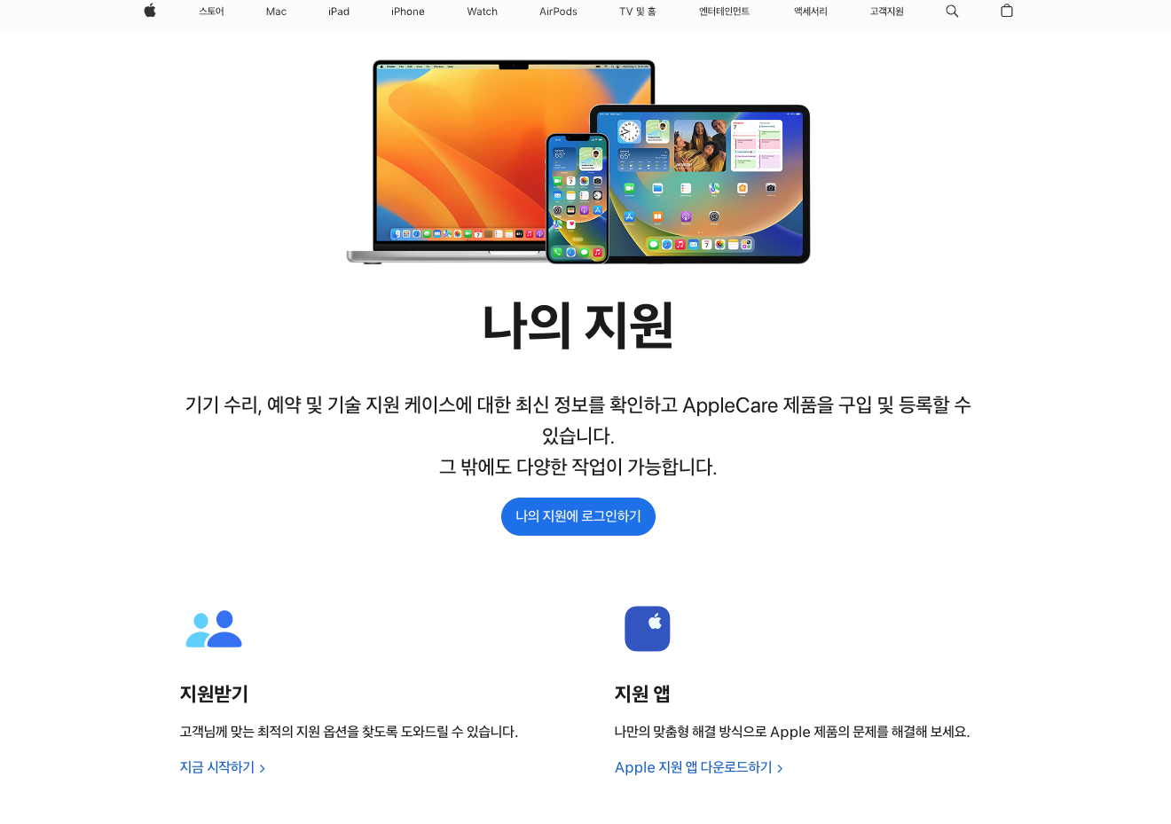 ▼ 1. 공식 Apple 고객 지원 페이지로 이동해 리소스 메뉴에 나의 지원 메뉴를 선택합니다.