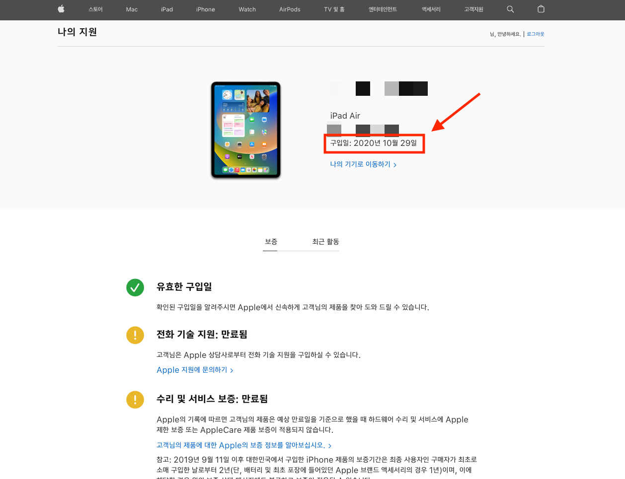 [ Apple ] 고객지원 맥북, 애플 제품 구매 이력 확인하기