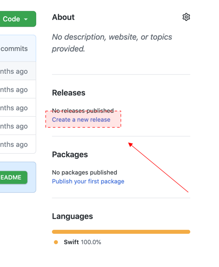 깃 허브 프로젝트를 생성해서 해당 프로젝트의 레파지토리와 연결합니다. 깃허브 프로젝트 생성에 대해서는 생략하겠습니다. Github 프로젝트 우측의 Create a new release라는 메뉴를 선택합니다.