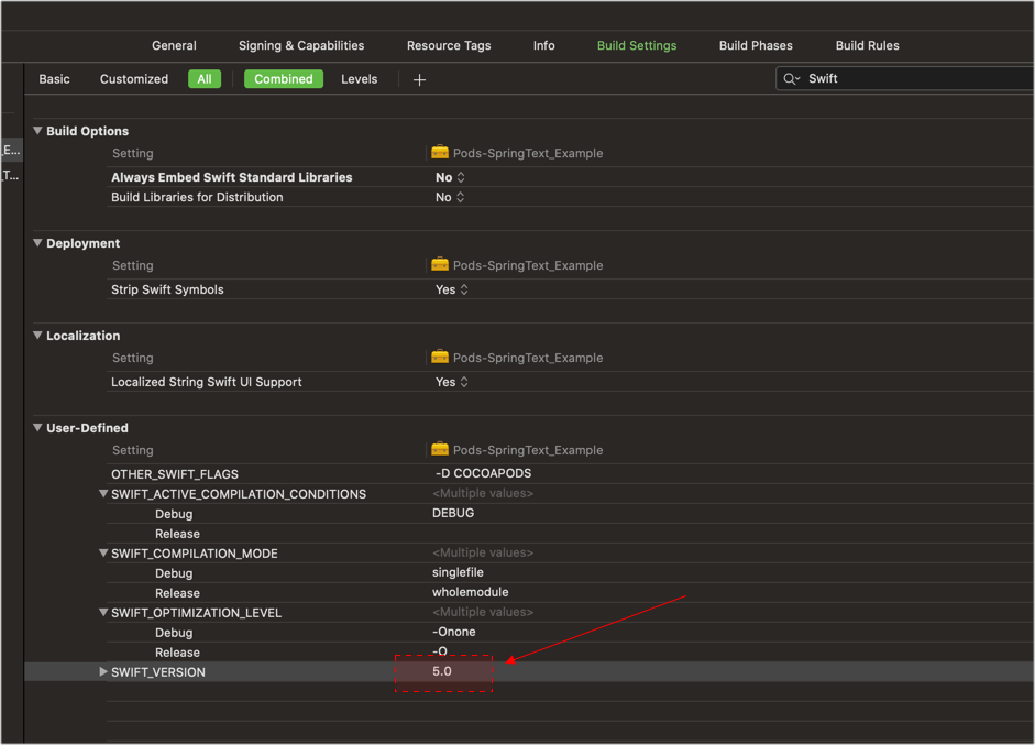 ▼ 4. 스위프트 버전 수정