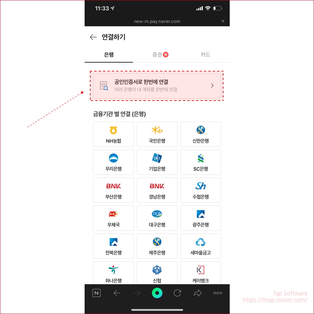 ▼ 4. 은행 몇개를 연결하면 의미가 없겠죠? 공인인증서로 한 번에 연결을 선택합니다.