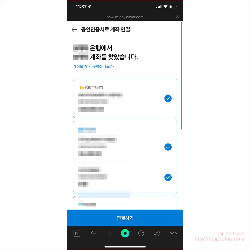 ▼ 14. 네이버가 은행에 연결 가능한 계좌를 검색합니다.