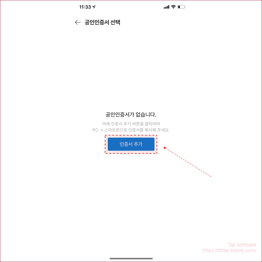 ▼ 5. 인증서 추가 버튼으로 인증서를 추가합니다.