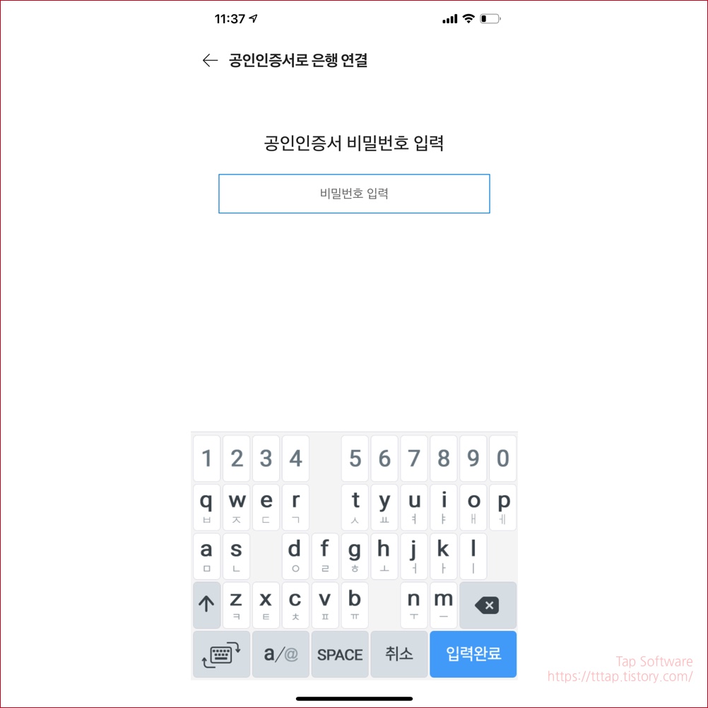 ▼ 13. 은행으로 연결하기 위해서 공인인증서 비밀번호를 입력합니다.