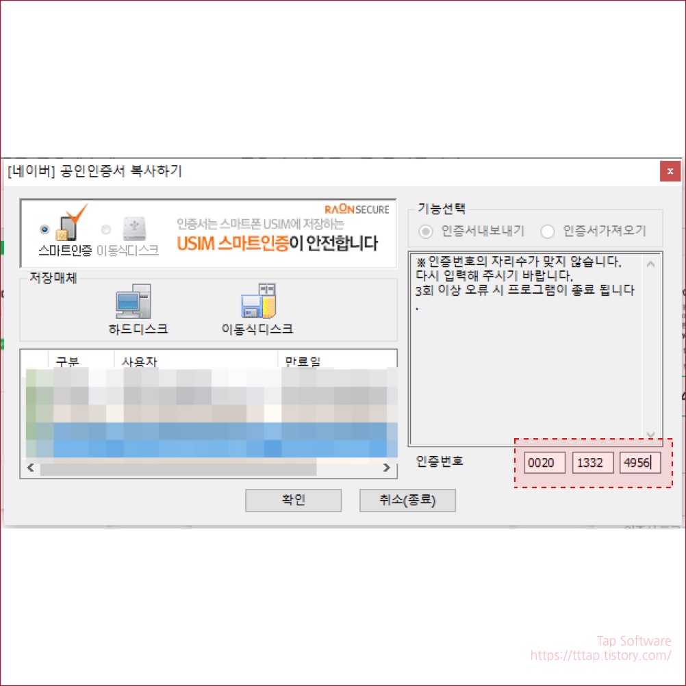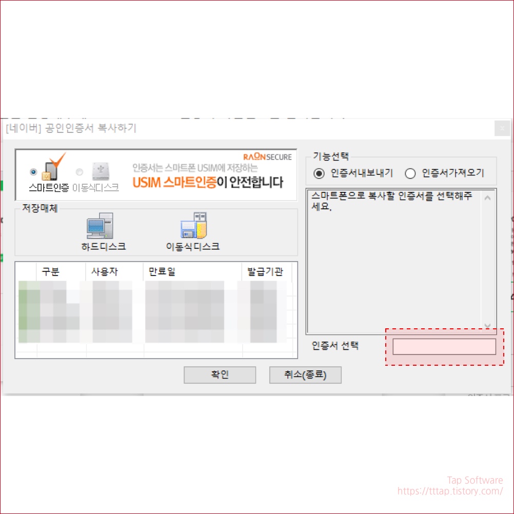 ▼ 9. [네이버] 공인인증서 복사하기 창이 뜹니다. 여기서 평소에 자신이 은행거래를 사용할 때 쓰는 인증서를 선택하고 우측 하단에 비밀번호를 입력합니다. 그리고 확인을 눌러줍니다.