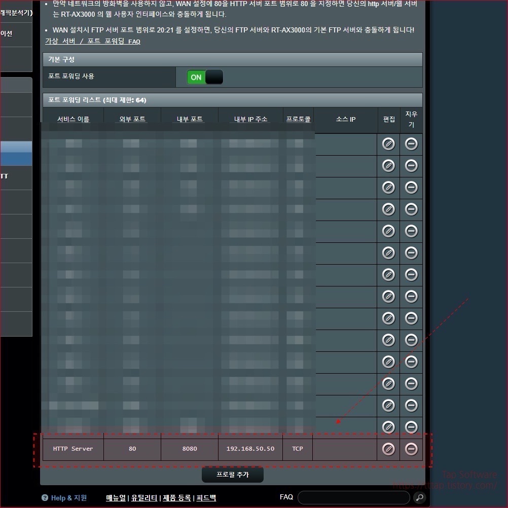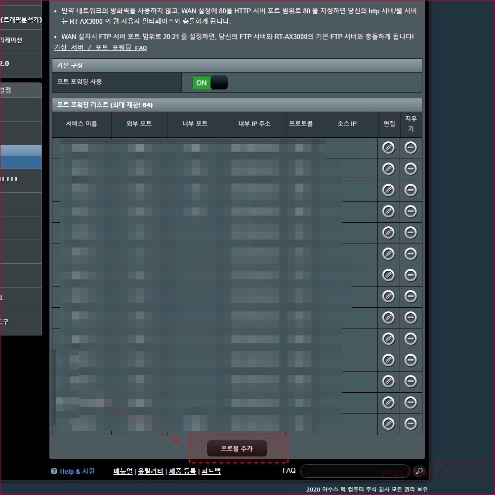 ▼ 3. 프로필 추가 버튼을 누릅니다. (포트 포워딩 리스트는 최대 64개 MAX)