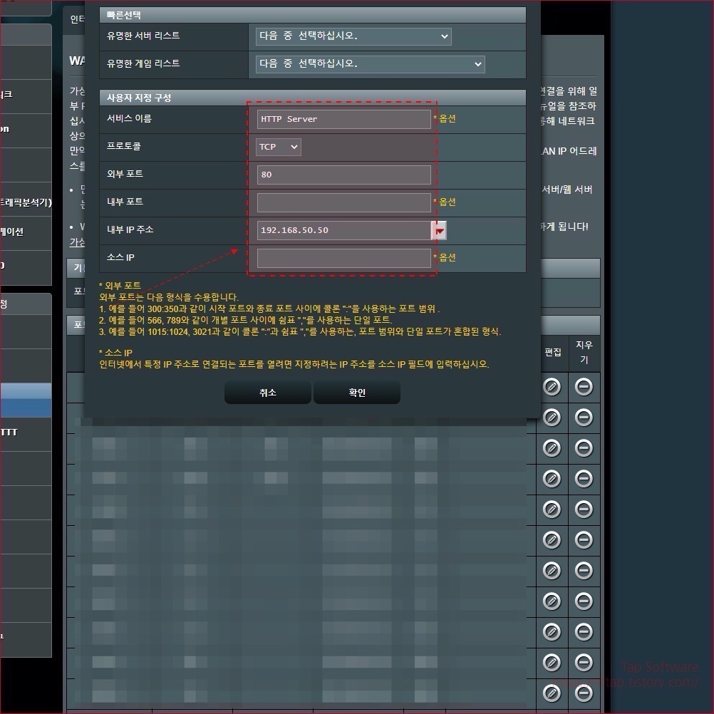 - 내부 IP주소 : 실제 포워딩 될 주소입니다. (예, 192.168.50.50)