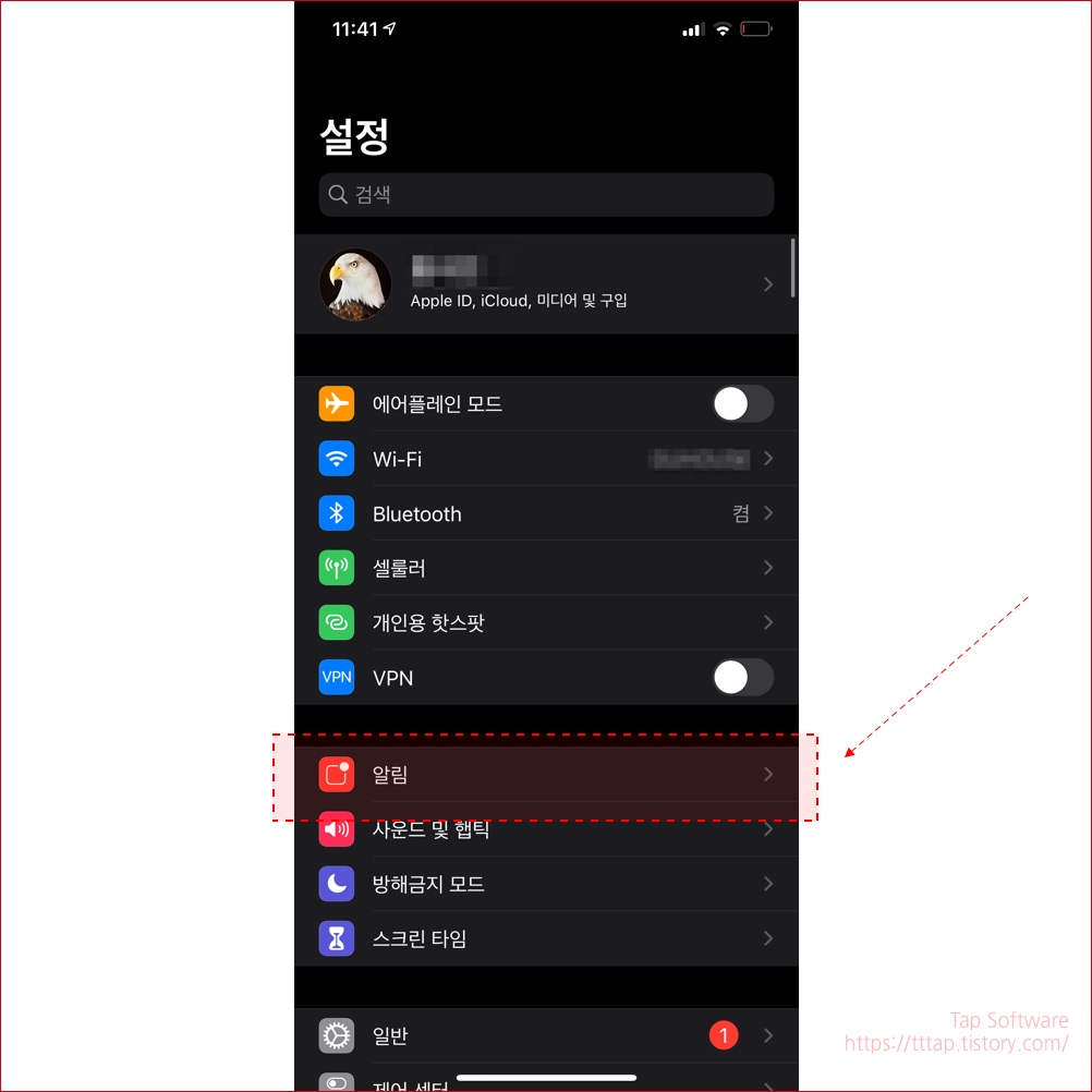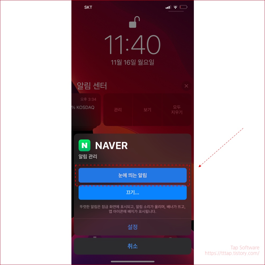 ▼ 4. 이제 설정 메뉴로 이동해서 알림이 정말 바뀌였는지 확인합니다.