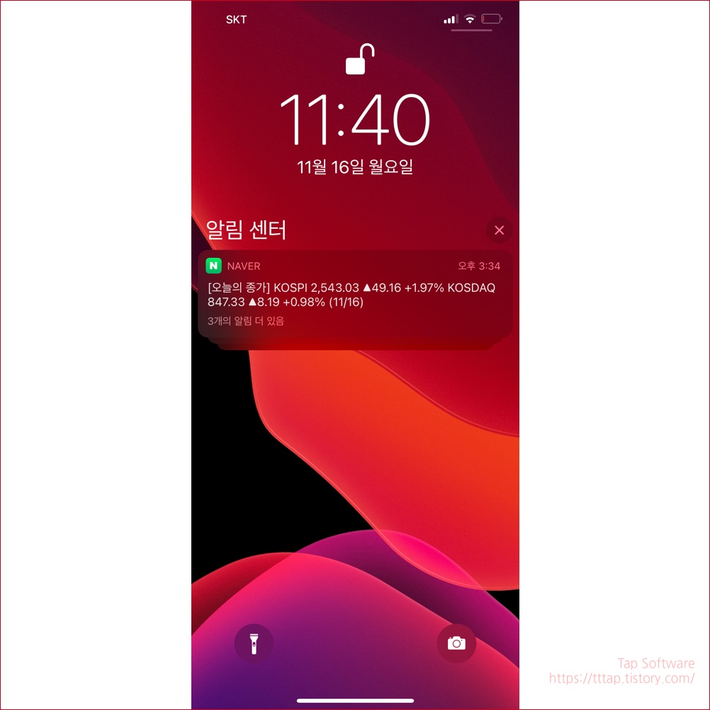 ▼ 1. 아이폰 메인 화면에서 조용히 전달할 알람을 왼쪽으로 스와이프 합니다.