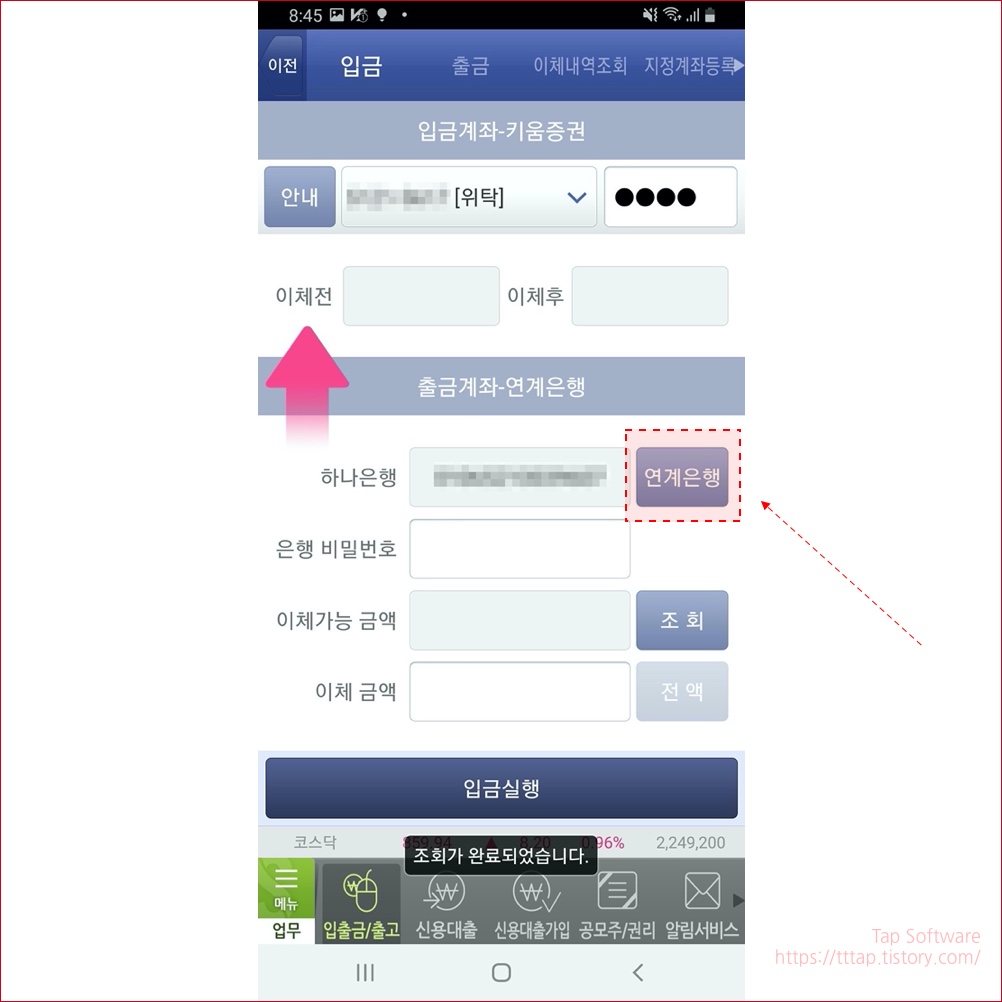 ▼ 4. 연계은행 버튼을 눌러서 계좌정보를 불러옵니다.