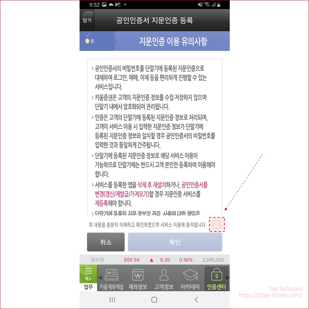 ▼ 5. 지문인증 이용 유의사항을 확인합니다.