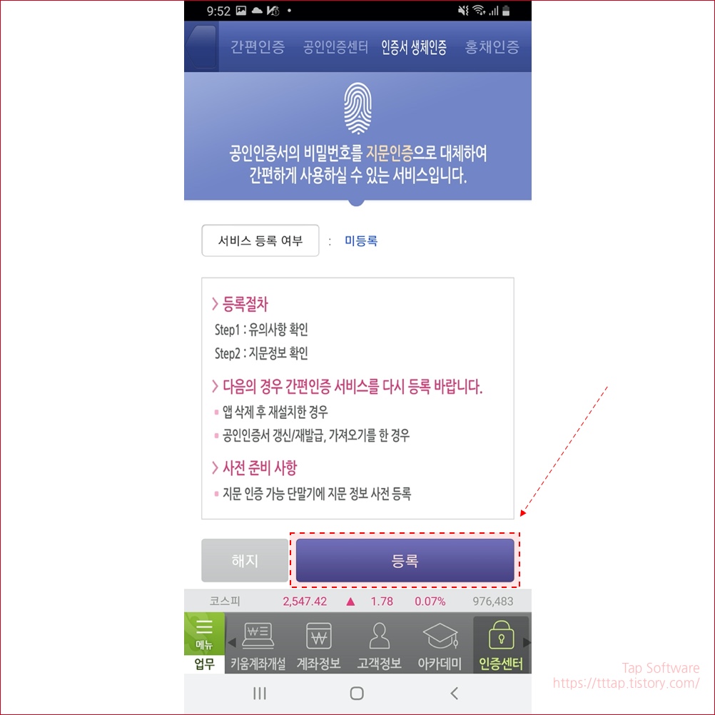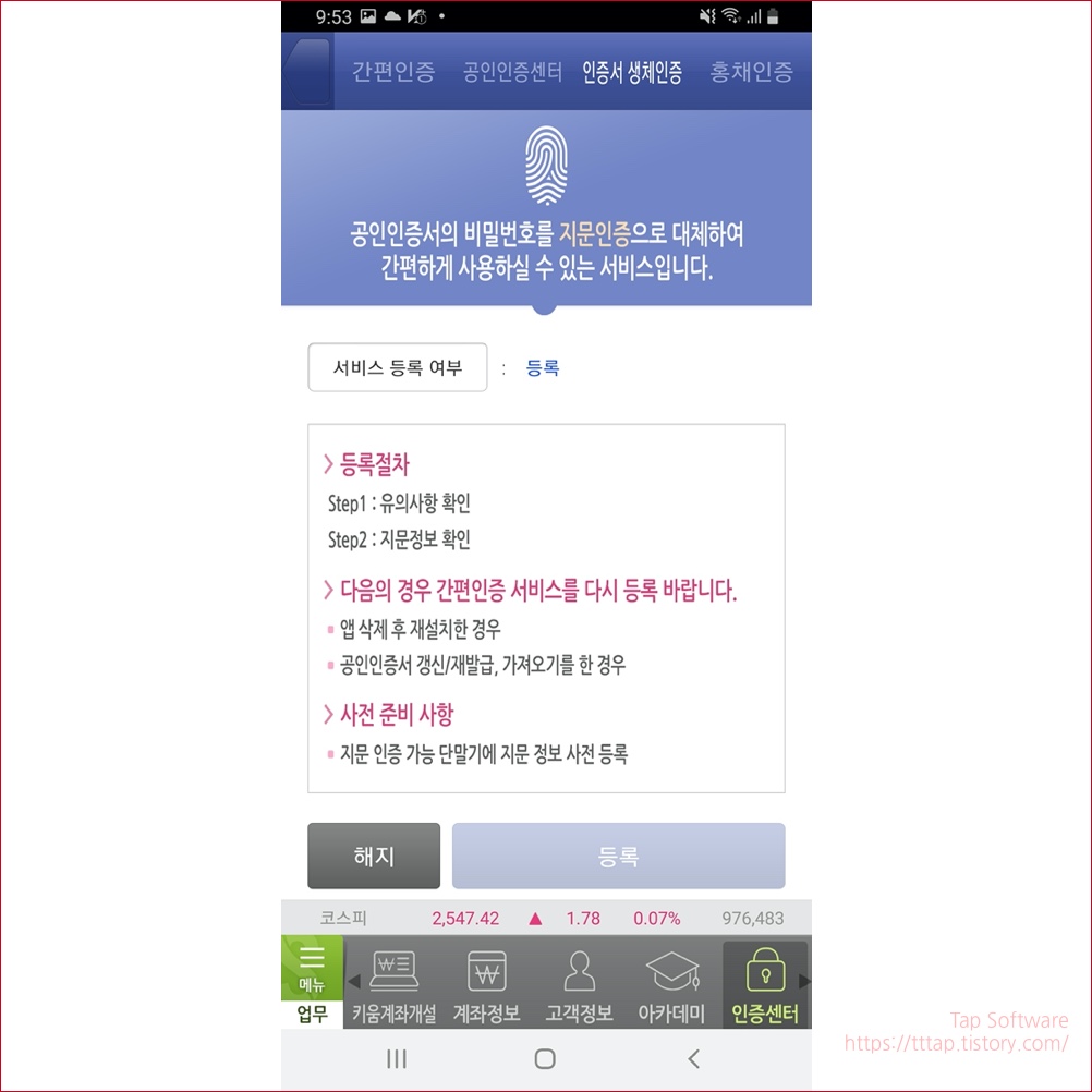 [키움증권] 영웅문 S 지문 / 생체인증 로그인