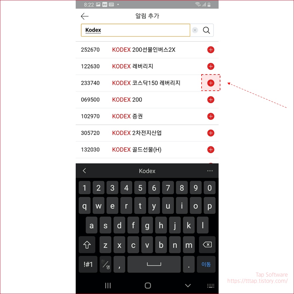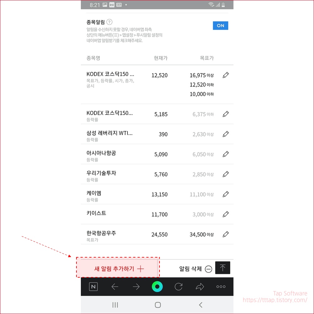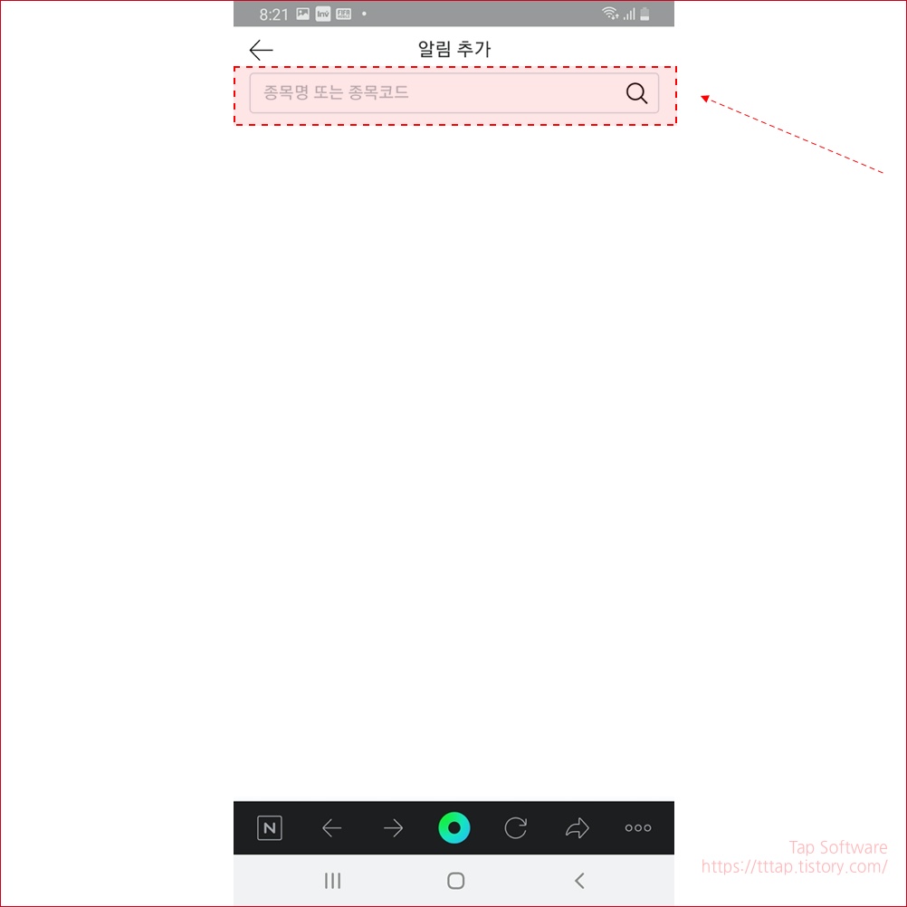 ▼ 5. 알림 추가 화면에서 추가하고 싶은 종목을 검색합니다.