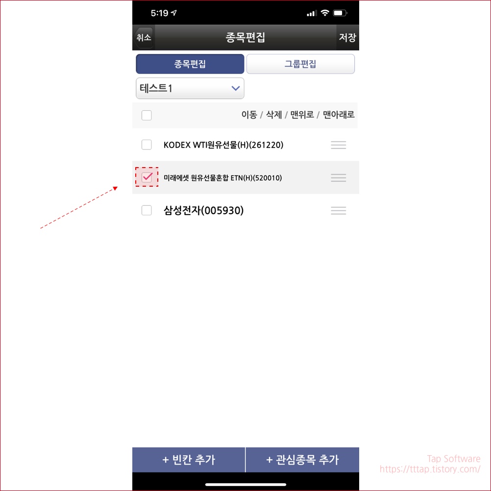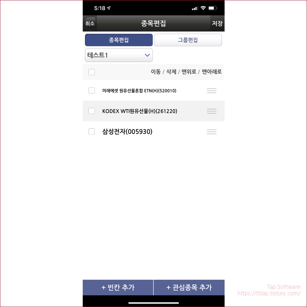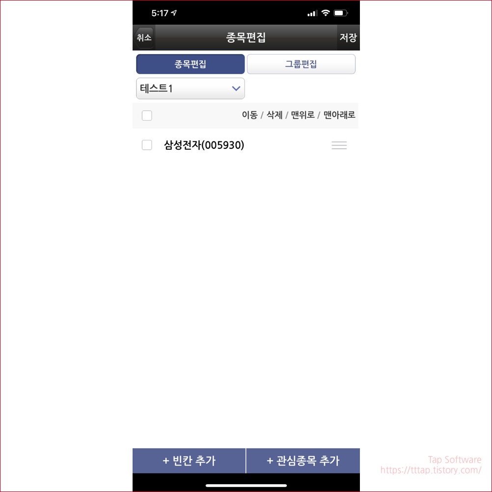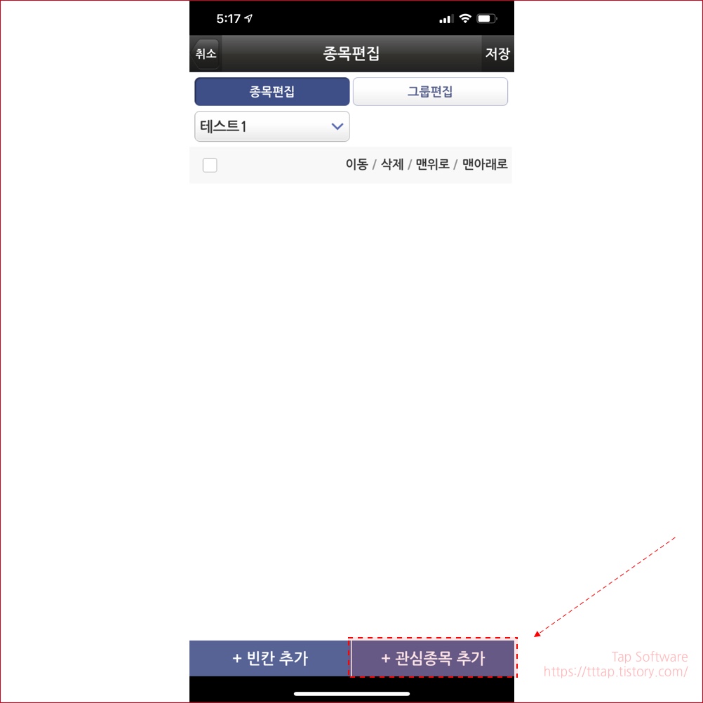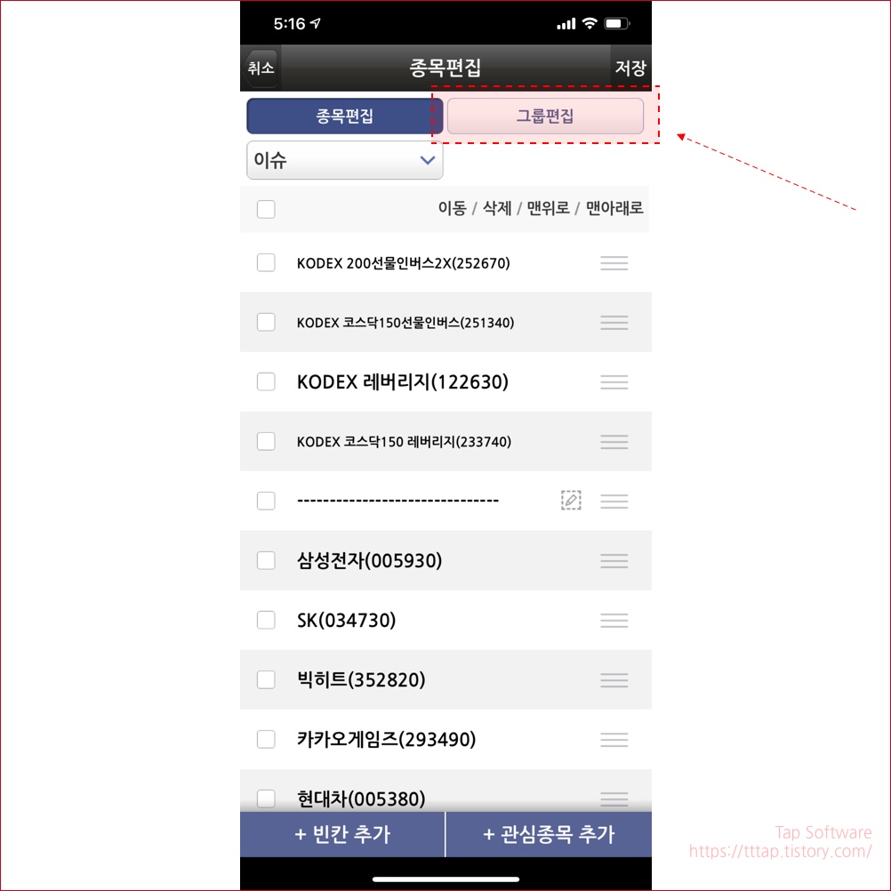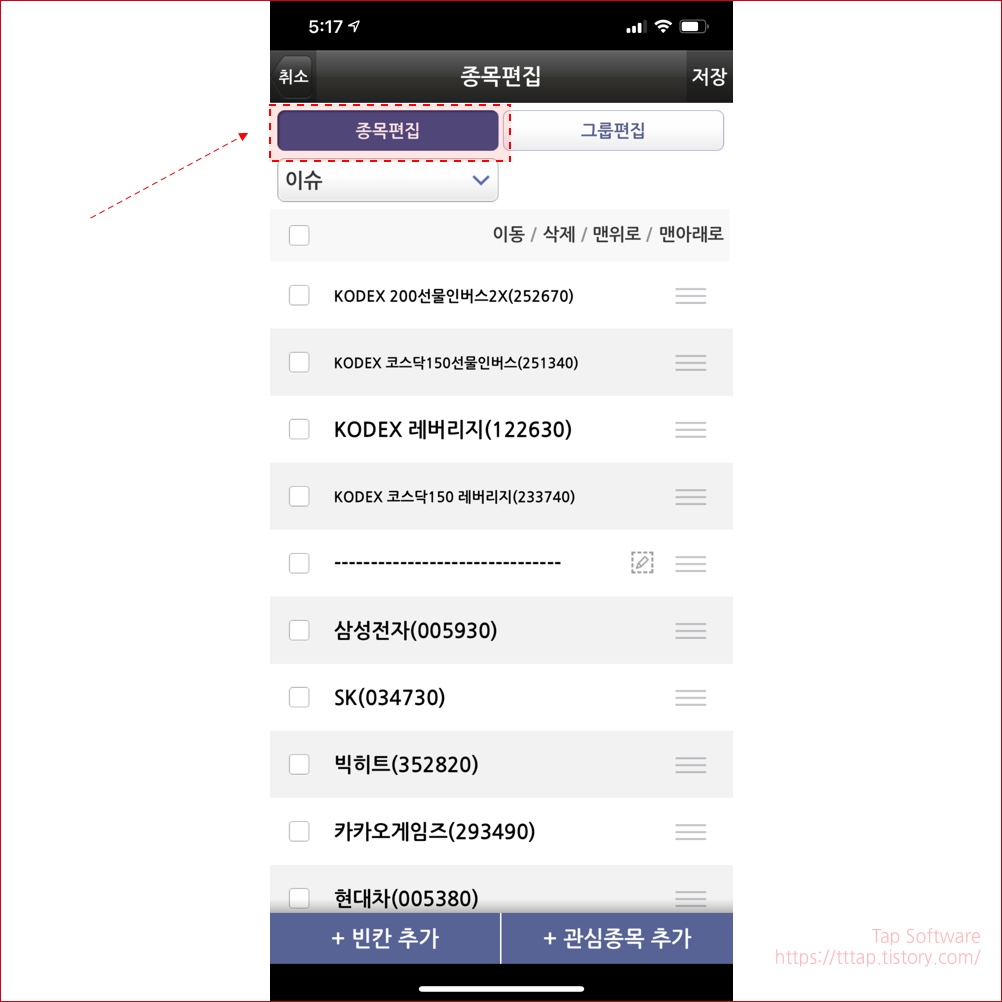 ▼ 6. 이제 그룹이 생성되었으니 종목을 추가해 보겠습니다. 우선 종목 편집 탭으로 이동합니다.