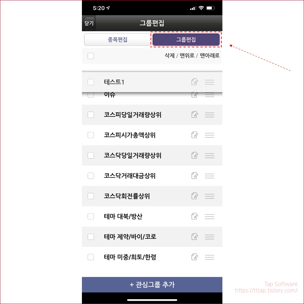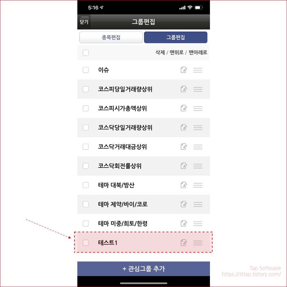 ▼ 3. 하단에 관심 그룹 추가 버튼을 눌러 새로운 그룹을 생성합니다.