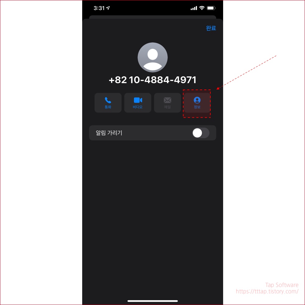 ▼ 9. 정보 메뉴를 눌러서 아예 차단을 해볼게요.