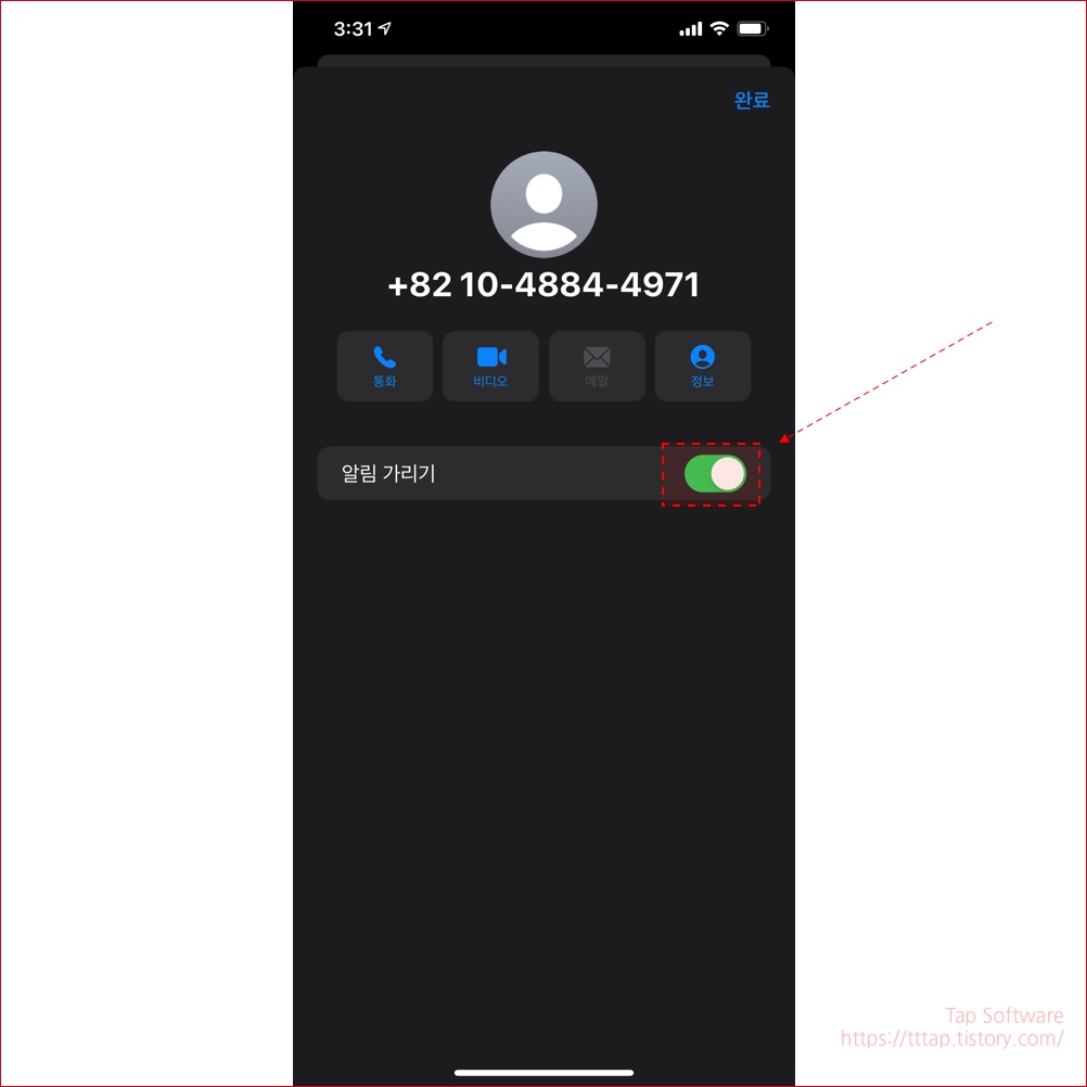 ▼ 7. 알림가리기 메뉴가 활성화 된 것을 보실 수 있습니다.