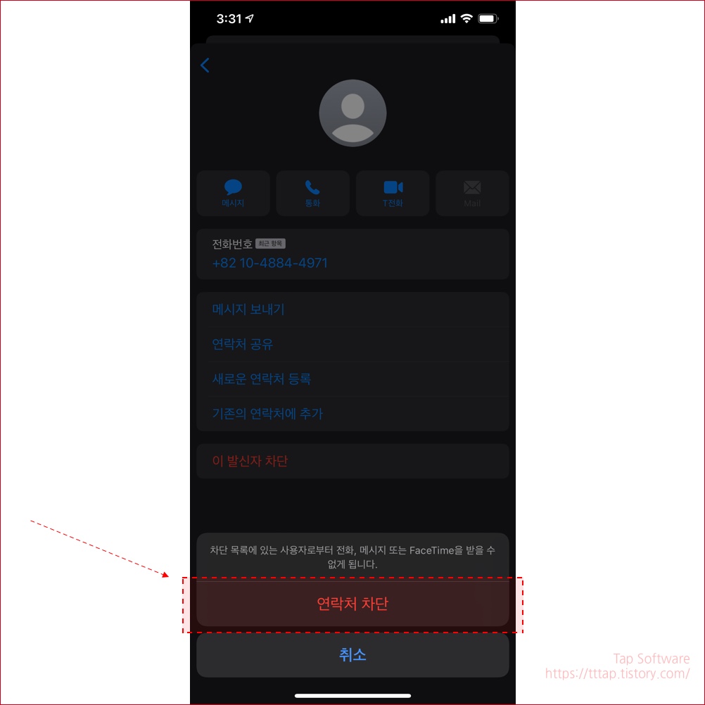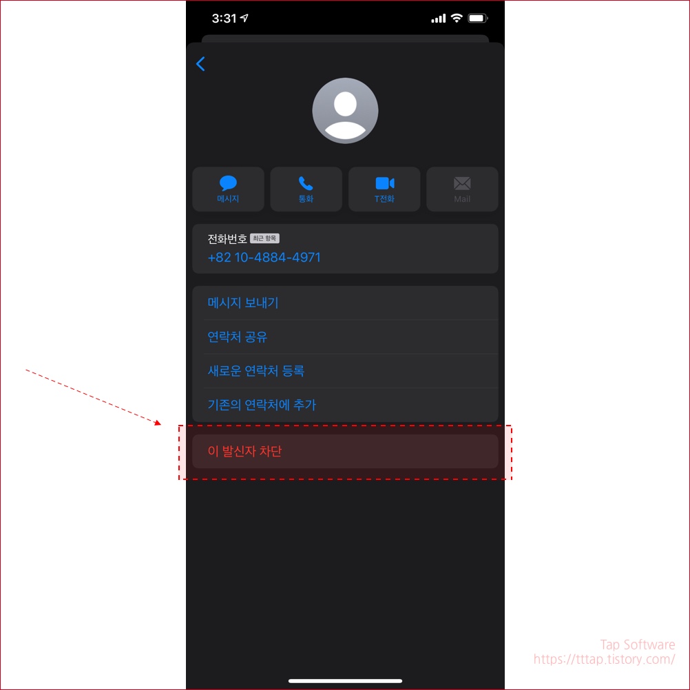 ▼ 10. 하단 메뉴에 이 발신자 차단이 있습니다.