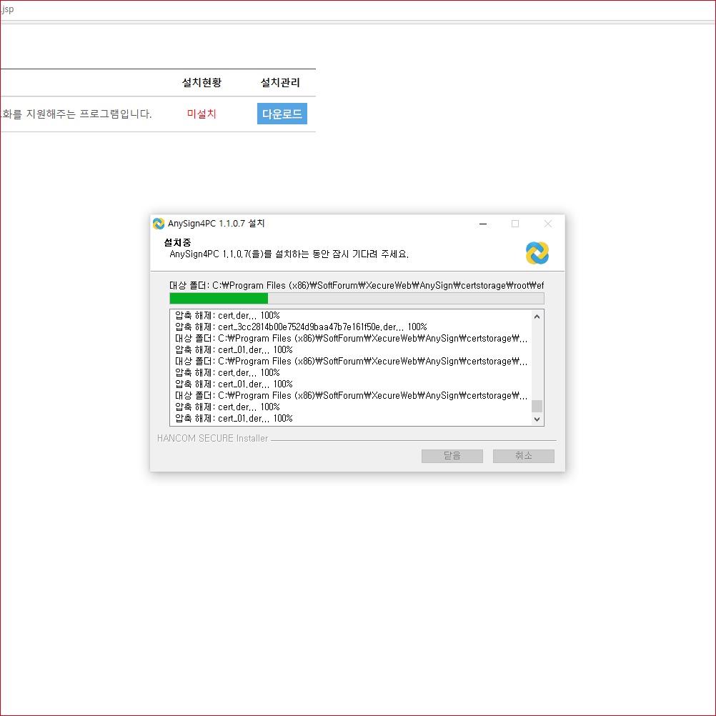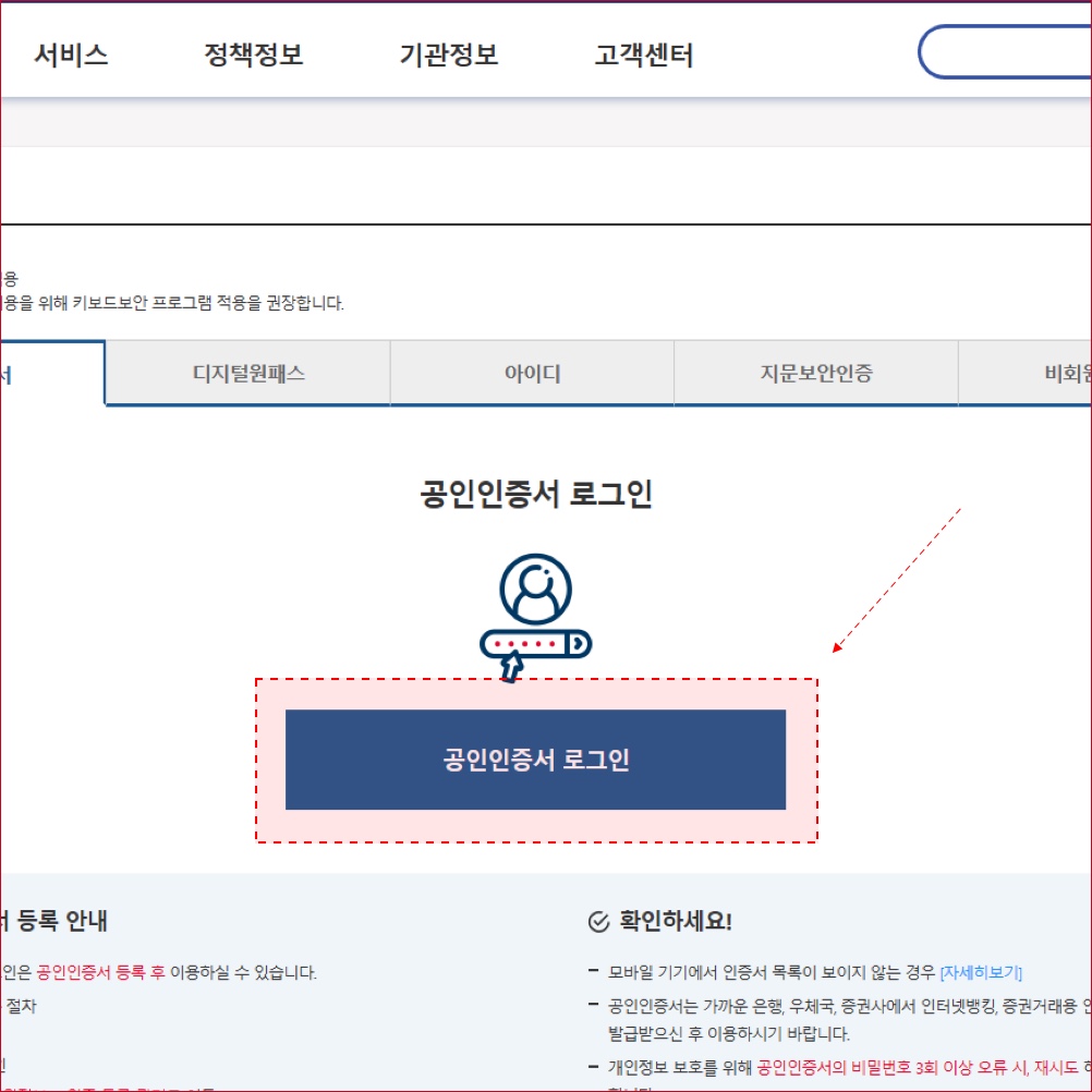 ▼ 6. 설치가 완료되면 공인인증서 로그인 화면으로 이동합니다.