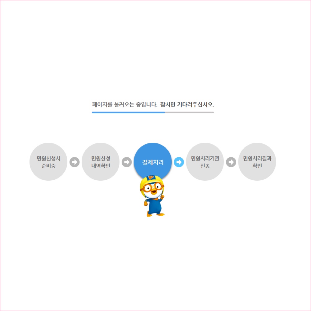 ▼ 12. 민원 신청하기 버튼을 누르면 로딩 화면으로 귀여운 뽀로로 화면이 나옵니다.