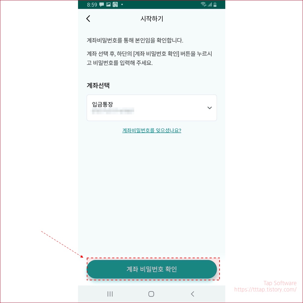 ▼ 4. 두번째로 계좌인증을 합니다. 인증할 계좌를 선택하고 계좌 비밀번호를 입력합니다.