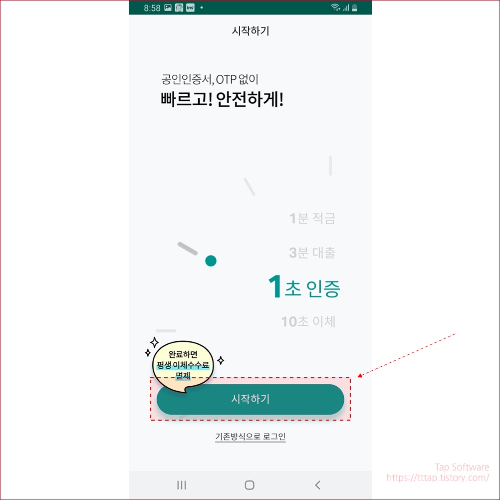 ▼ 1. 하나은행 앱 메인화면입니다. 시작하기 버튼을 눌러서 간편 로그인을 시작합니다.