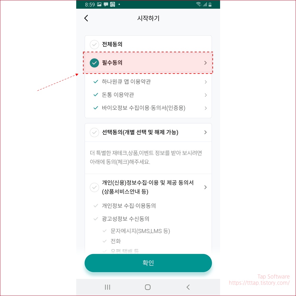 ▼ 5. 약관 동의를 확인합니다. 필수 동의만 해도 상관없습니다.