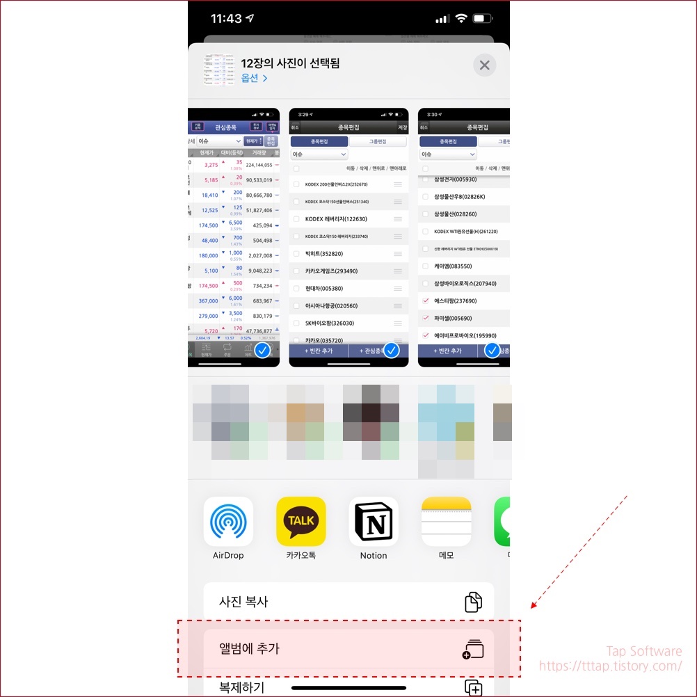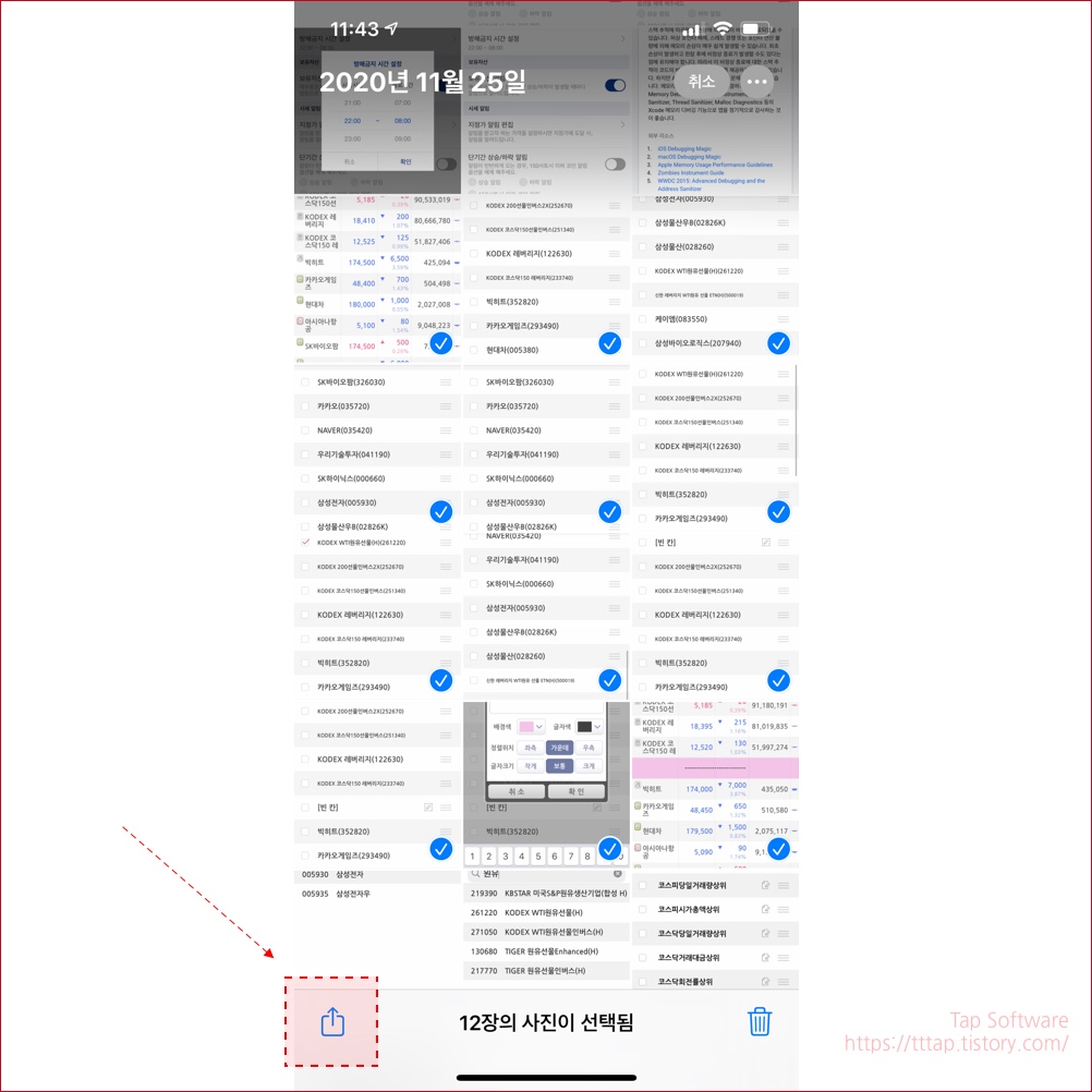 ▼ 2. 이미지를 여러장 선택하고 공유 버튼을 선택합니다.