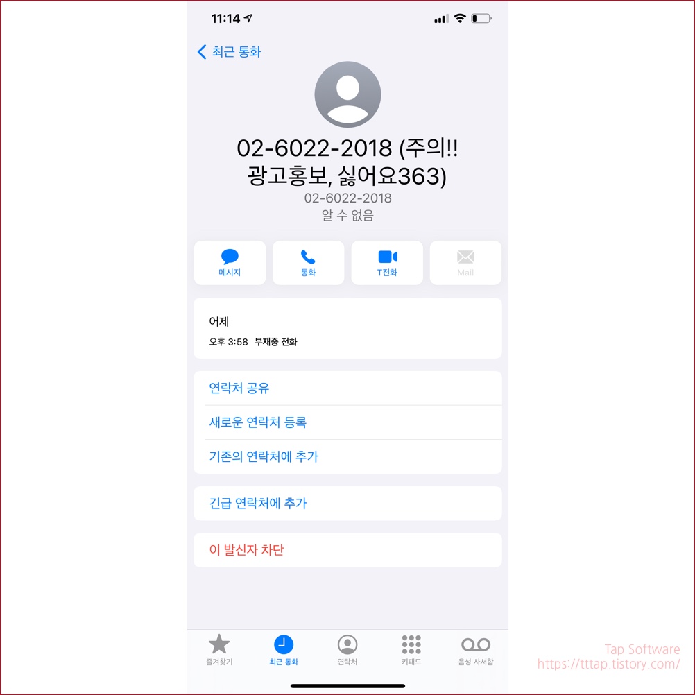 ▼ 7. 마지막으로 연락처 차단도 가능합니다. 제 블로그 다른글에 있으니 확인해봐주세요.