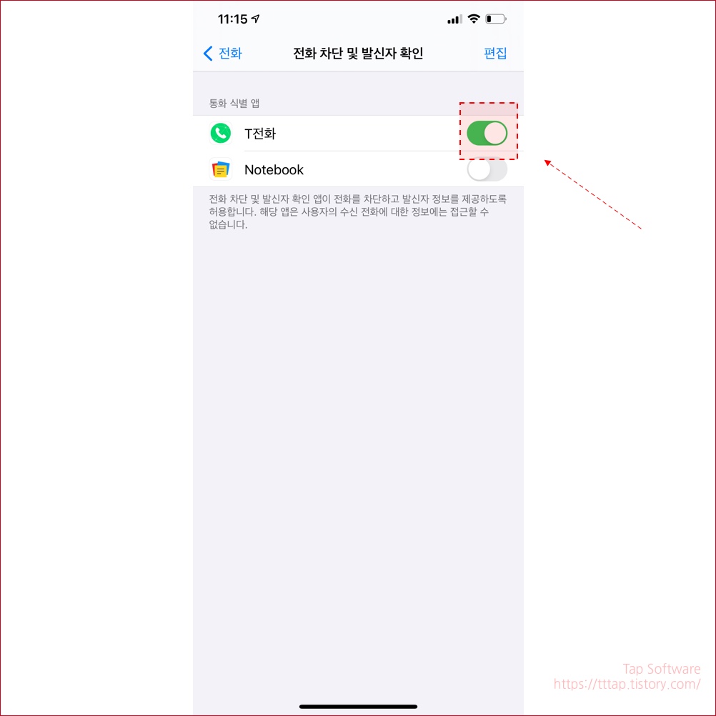 ▼ 6. T전화 스위치를 켜줍니다.