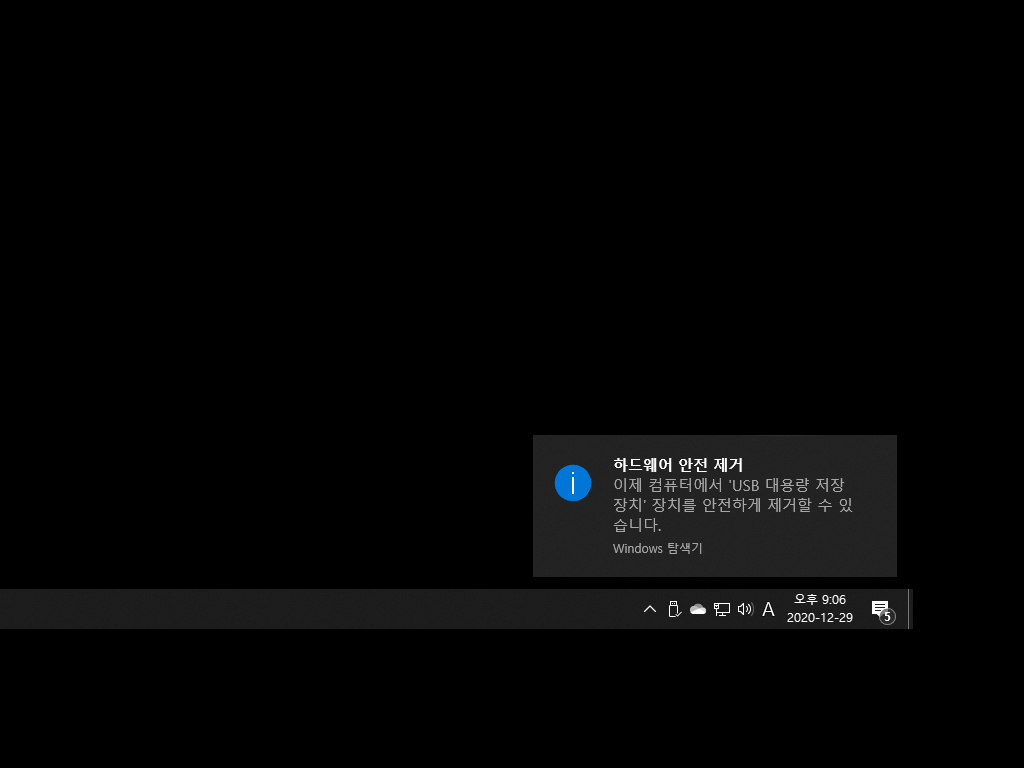 ▼ 3. 하드웨어 안전 제거 라는 창과 함께 제거가 완료됩니다. 이제 USB를 뽑아도 괜찮습니다.